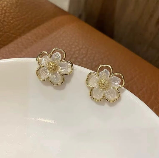 Shine Lyric Dainty Camellia Ear Jackets Hypoallergic • Pearl Curved Floral Earrings • French Style Front Back Flower Studs • Minimalist Shell Flower Jewelry • Bridesmaid & Anniversary Gift